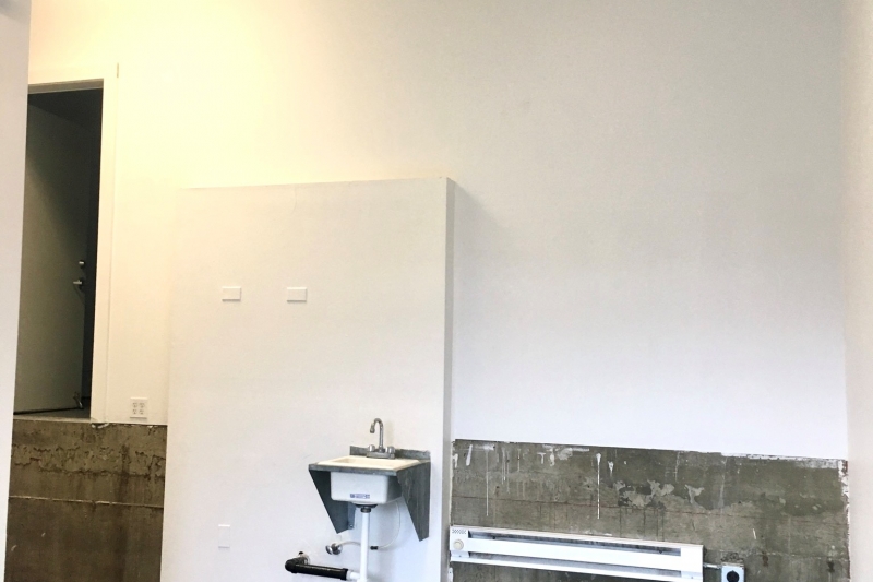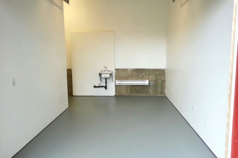 ceilings for showing artwork or vertical storage. Baseboard heat and cold water sink in the unit. Restrooms in the building. Utilities included in monthly rent of $875 a month.
