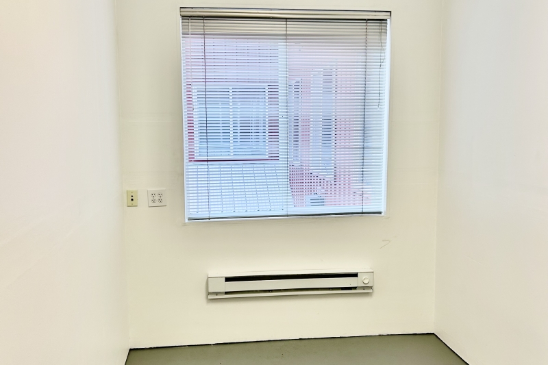 Interior facing work studio studio is perfect for any creative looking for an affordable and private space to work in. Tall ceilings, large working window, heat, power, over head light, cold water utility sink. This unit is perfect for many creative pursuits including sewing/fiber arts, writing, jewelry design, candle/soap making etc.