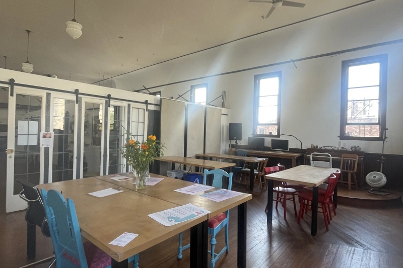 Side Rail Collective has multiple private studio spaces available for monthly rent inside our interdisciplinary artist workspace in Georgetown. This is a dedicated studio suited to an artist or artists who want a stable home base while remaining part of a collaborative creative community.