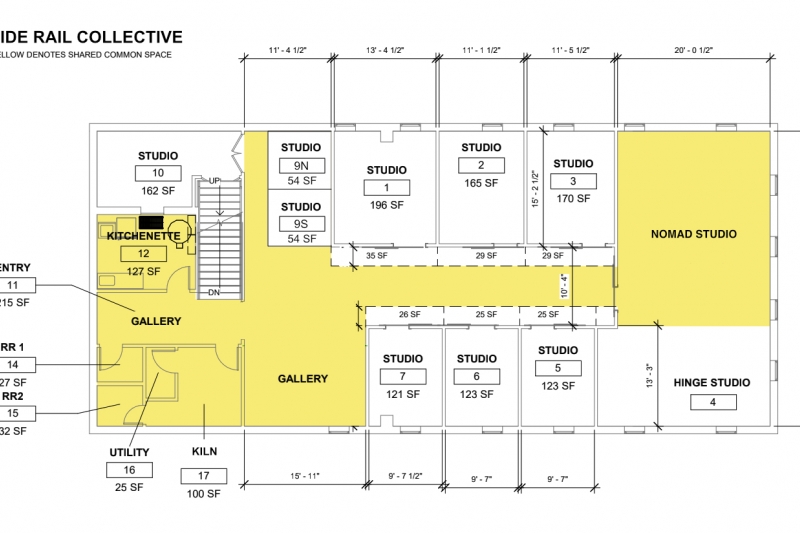 Side Rail offers many ways to engage as a Member, with access to our shared studio starting at $40/mo, and private studios with monthly fees which range based on square footage, currently starting at $185/mo for 54 sqft of private space.